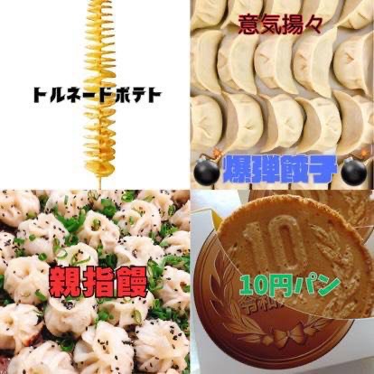 ほか、爆弾餃子、親指饅、トルネードポテト、麻花、雲呑スープなど